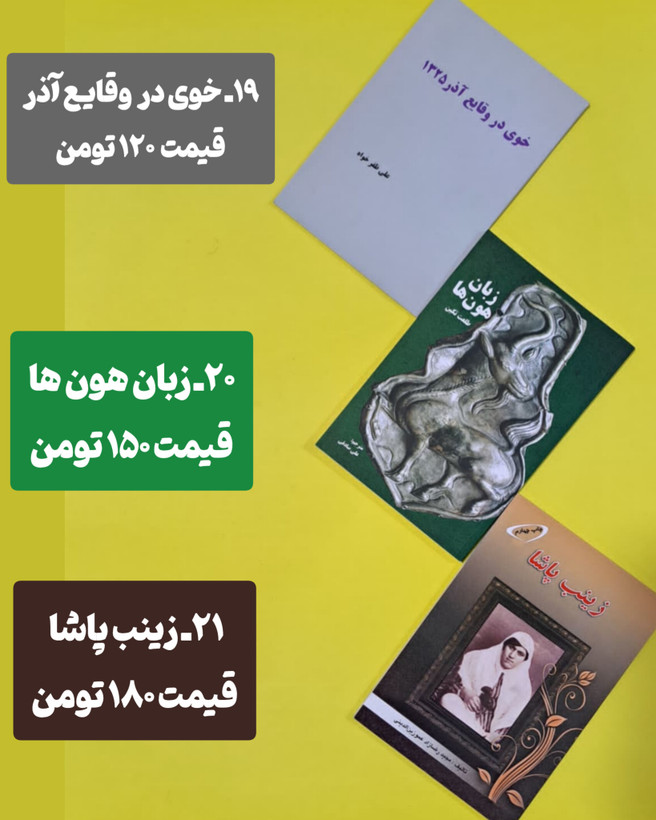 کتاب خوی در وقایع ۲۱ آذر ۱۳۲۴/ زبان هون ها/ زندگینامه زینب پاشا